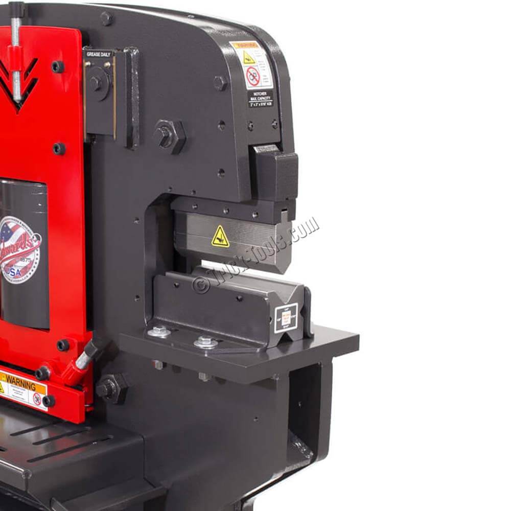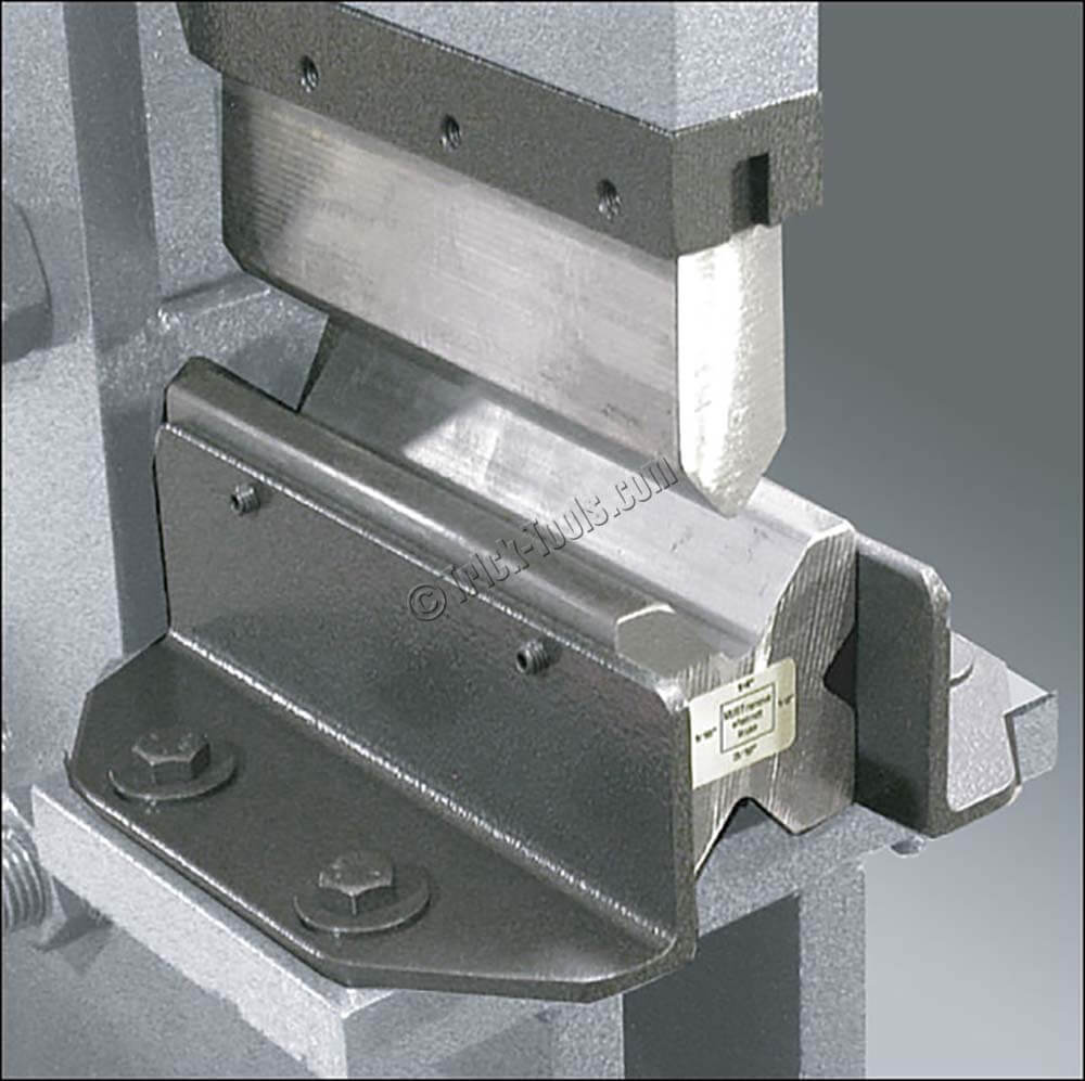 Brackets, frames, pans and tanks are just a few of the applications appropriate for brake tooling. This brake tooling includes a standard punch and a 4-way die that allows for 1/16, 1/8, 3/16 and 1/4 inch material to be bent to a 90 degree angle. The bottom brake die is held with brackets that easily bolt to the mounting table. Precision, repeatable bending is achievable with the combination of brake tooling and Edwards’ electric stroke control option.