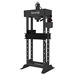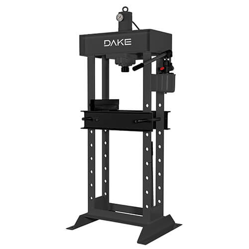 The Dake M-20 hand operated hydraulic press is a high quality, but economical H-Frame press option. This 20 ton press features a screw ram with 6 inches of total travel, pressure gauge, and an adjustable height work table.