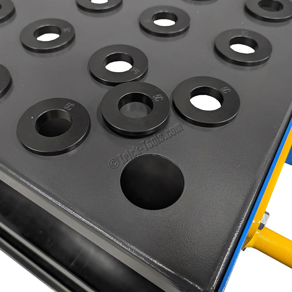 Keep your tooling organized with the Baileigh Machinist's Tooling Cart. This mobile tool cart features a main shelf made for 28 insert options. Inserts for CAT40, CAT30, R8, and 5C are included, along with a shop towel holder to keep your hands and work area clean. Two center shelves are rubber-lined to cushion tools from damage. The features and customizable modular design of this mobile tool cart make it the perfect accessory for the mill or lathe in your shop.