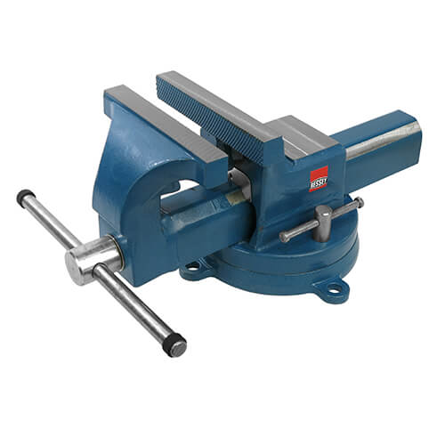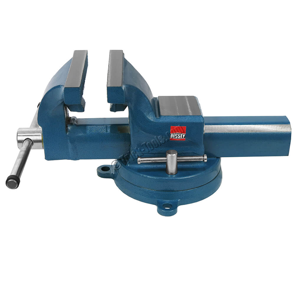 This high-quality vice provides a smooth and accurate tightening motion and tremendous grip. The 90,000 psi drop-forged alloy steel construction makes it virtually unbreakable. The anvil area and jaws are integral with the forging and then induction hardened to HRC 52-58. The adjustable gibs allow for the removal of any free play and ensure perfect alignment of the precision-machined jaws. The mounting base allows for 360-degree rotation with quick, easy, high-force locking, but can be removed for applications where fixed mounting is required. Bessey guarantees these vises against breakage during normal use. This vise meets quality standards: ISO14001, ISO9001, Q1, TUV SUED/GS