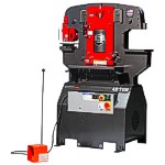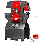The Jaws 40 ton Ironworker is a fully featured ironworker with a small footprint. Featuring four available workstations, the Jaws 40 ton incorporates a 10 inch bar shear, angle shear, heavy duty punch station, and an open tooling cavity that can hold an array of optional tooling.