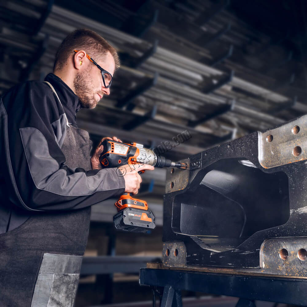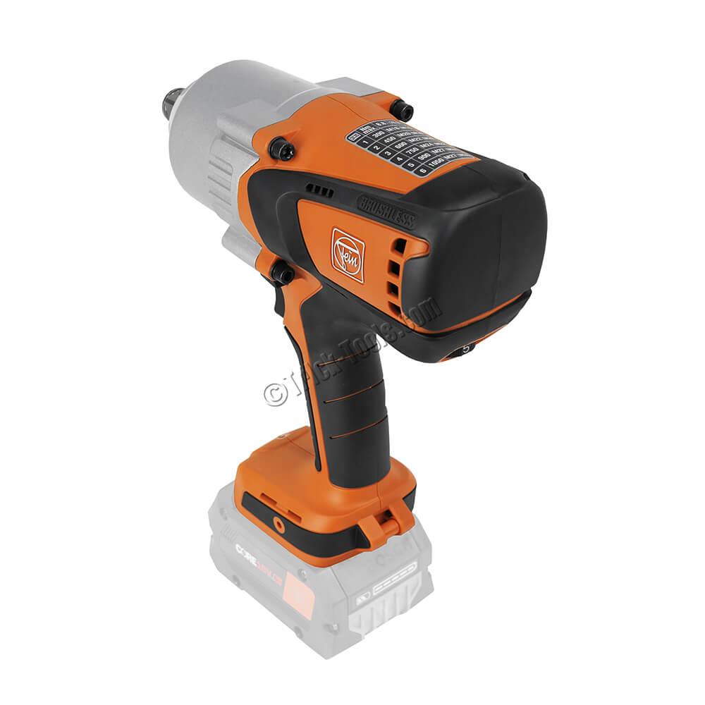 This Fein 3/4 inch Cordless Impact Wrench is a great addition to the Fein Cordless lineup with up to 775 ft/lbs of torque for tightening and 1,105 ft/lbs for loosening. The Fein PowerDrive brushless motor features a robust, solid-metal impact gearbox and 6 electronic torque settings for fastening applications up to 1-1/16 inch [M27]. A great companion to a mag drill for lightning-fast tapping applications. See the Accessories tab for a selection of Fein Vario drive impact-rated taps and quick-change adapter.