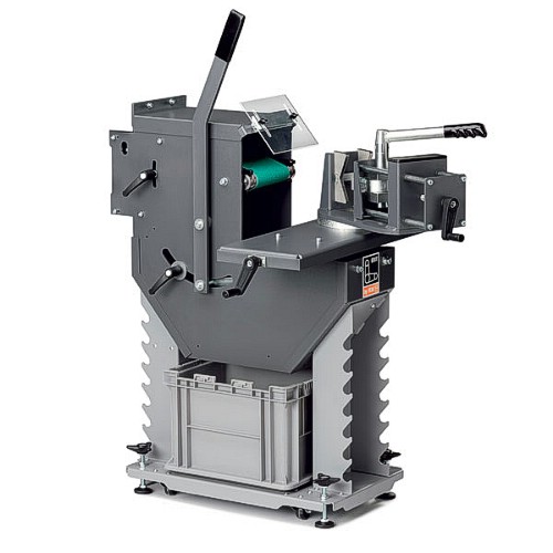 Fast and exact: the pipe notching module GIR is optimally tuned to industrial applications. The high abrasion performance guarantees economic operation, and with 6 inch belt width the GIR is also suited for work pieces with greater diameters. Its robust construction was developed especially for use in industrial environments; continuous use is no problem for the GIR module. The great power output of the motors ensures economical grinding of pipes.