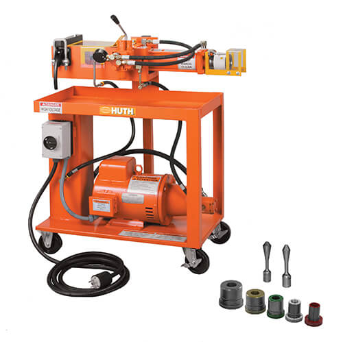 Huth's Model 1673 Portable Swager/Expander equips you to form ball joints, slip joints, flares, and flanges, and performs doming and reducing anywhere in your shop. This tubing expander and reducer has 25,000 lbs of power provided by a 5 hp electric/hydraulic pump. It is also equipped with the Huth Accu-Sizer system, an automatic preset expanding system that allows for precise expansion every time.