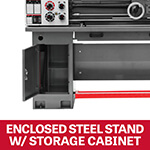This lathe is equipped with a 6 inch 3-jaw direct mount chuck with a top reversing jaw, a steady rest, follow rest, LED work light, and a FREE stand with built in storage and emergency foot switch for added safety. All JET lathes come with the industry-leading JET Red Assurance Two-Year Warranty.