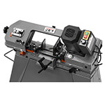 The JET HVBS-56V, 5 x 6 Metalworking Band Saw is powered by a 1/2 hp motor. Each HVBS-56 comes equipped with fully adjustable ball bearing blade guides, a 1/2 inch carbon steel blade, adjustable material stop and vertical worktable. Variable speed give you the ability to cut a variety of materials with optimal results. Automatic shut off after each cut increases operator safety. Easy movement around the shop is done with the 2 large diameter wheels and built in handle. Adjustable front legs ensure level and accurate cuts by featuring adjustable leveling pads.