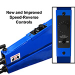 Built from plate steel, with 3/4 inch heavy duty shafts and hardened drive gears, this bead roller is built to last. The included industrial motor will bead up to 16 gauge (.059) mild steel and .063 aluminum. The reversible 110-volt motor features a variable-speed foot pedal control, a forward/reverse switch, and a speed range adjustment dial, allowing the operator to limit the maximum speed of the bead roller motor.