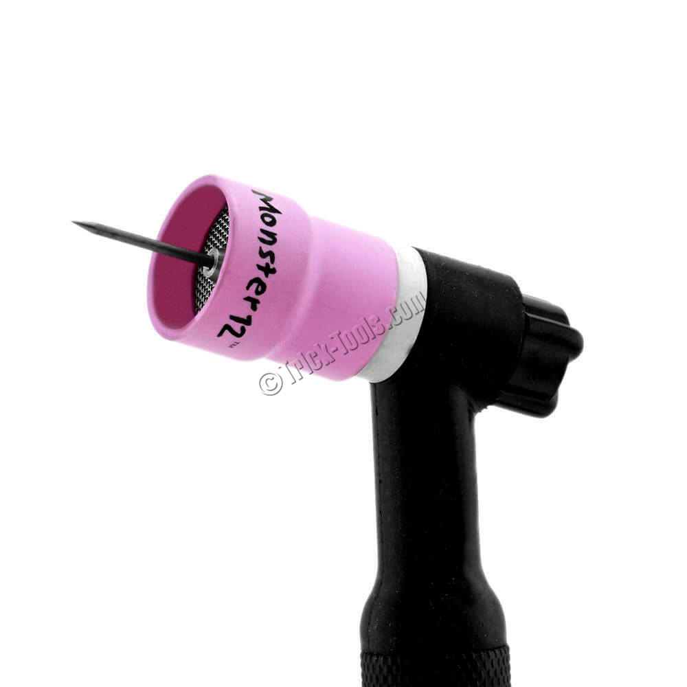 The Monster 12 Nozzle Kit from Arc-Zone features two No. 12 sized cups. These cups are 1 inch long with a 3/4 inch orifice and are engineered to deliver a steady stream of shielding gas for improved weld quality, consistency, and reduced post weld cleanup. They work great for welding on many exotic materials such as Titanium, Inconel, Hastelloy, Monel, Stainless Steel, Chromoly, and Docol R8.