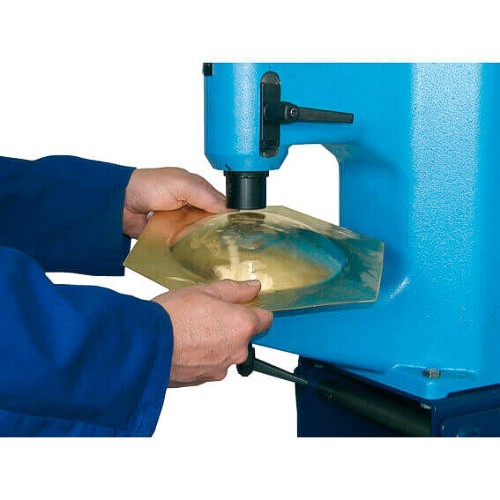These high-quality Eckold PFW40K doming dies are built in Switzerland and have a 16 gauge (1.5mm) mild steel capacity or .059 inch (1.5mm) aluminum capacity. This set creates a domed profile from flat sheet metal in very little time. The PFW40K fits the Eckold KF170PD.