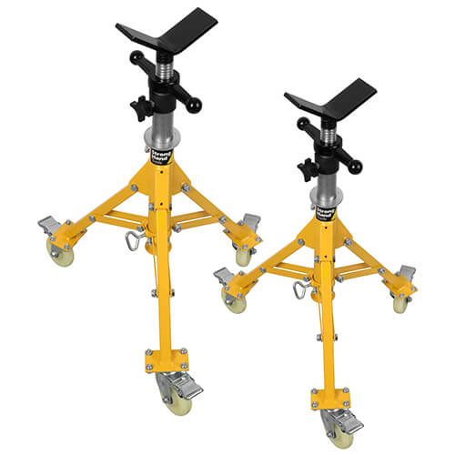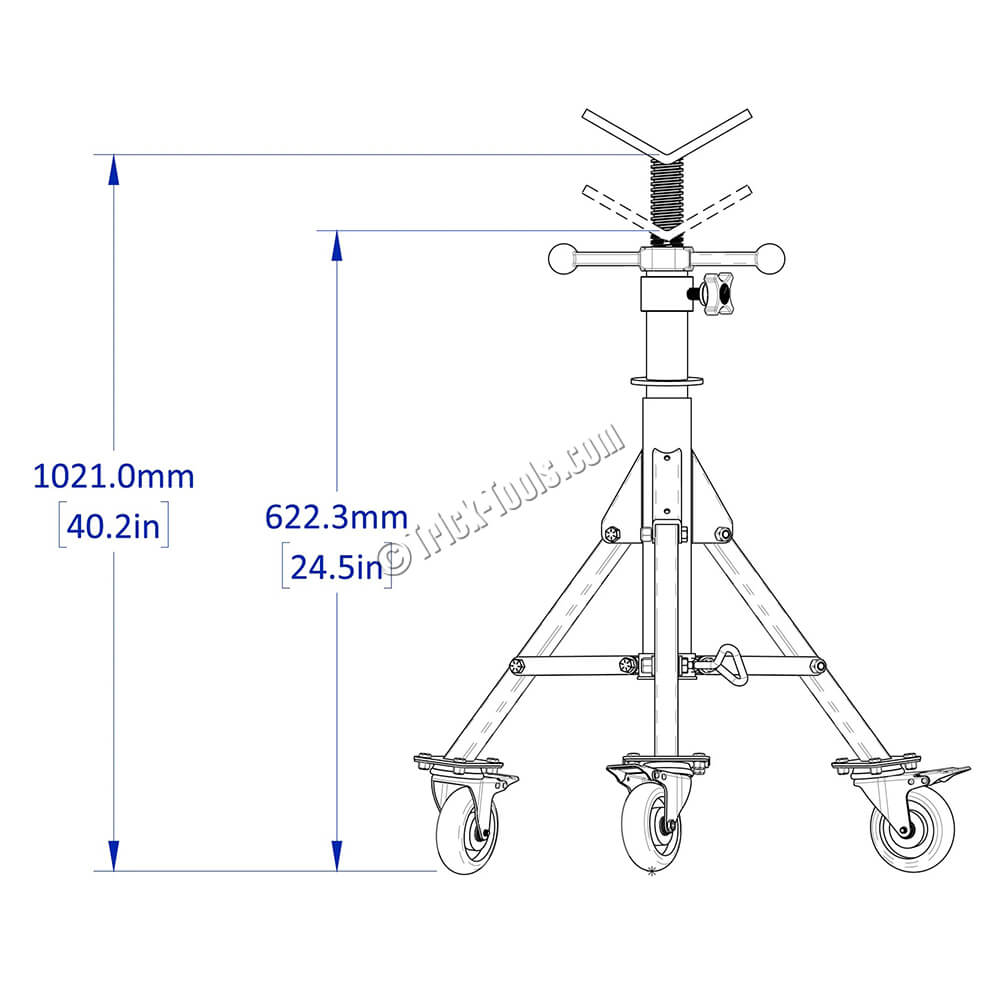 Get the support you need with Strong Hand PTS1108C Foldable Tripod with Casters. These tripods are height adjustable from 24.5 to 40.2 inches, include a v-shaped head to hold various sized material. With an 800 lbs capacity and weighing in at only 25 lbs, they are easy to position and ready for most jobs around the shop or job site.