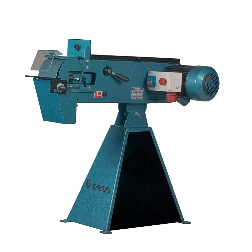 These high-quality European built belt grinders are ideal for heavy material removal. They are equipped with a heavy duty 4.8 hp motor that turns the 6x79 inch belt at 7000 feet per minute. Grinding can be performed on the 8 inch front contact wheel or on the flat platen on top of the machine.