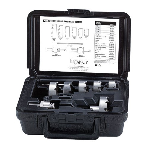 Slugger Sheet Metal Cutters from Fein easily outperform standard hole saws by cutting a more accurate hole up to three times faster with far superior tool life. These precision ground cutters can be used in a hand drill or drill press and will leave a smooth finish with minimal material deformation. Their 1/4 inch depth of cut is perfect for sheet metal and makes a great companion to our dimple dies and flare tools.