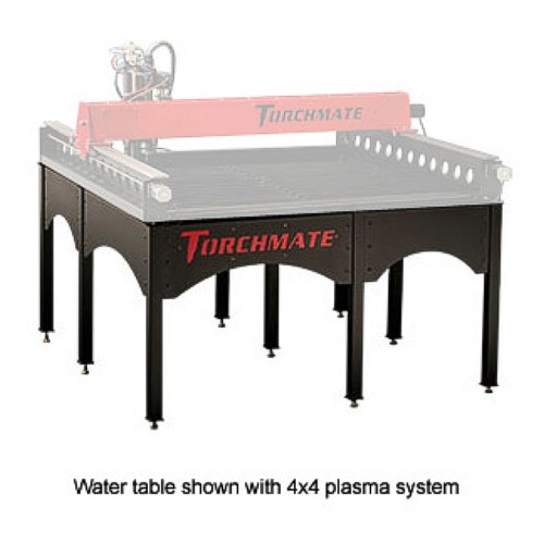 The Torchmate 4 x 4 heavy duty water table is designed to work with the Torchmate 4 x 4 foot plasma system. Using a water table virtually eliminates dust from cutting as well as cools parts as they are cut to reduce warping from heat. It features a durable powder coated finished and a drain for easy cleaning. The legs also feature leveling feet. Simply add your consumable slats and water, and start cutting!
