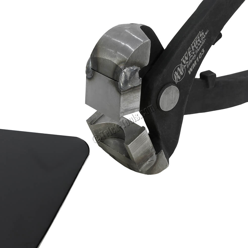 Clean up your sheet metal corners with the Wehrs Machine Body Tin Corner Notcher. This notcher makes it easy to put a 1/2 inch radius on 90 degree corners. Rated for up to .060 aluminum and able to notch hemmed .040 aluminum as well, this notcher is great for decking and body panel tinwork.