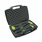 The Wilton BASH 3 piece mechanics hammer kit with carrying case sets a new standard to heavy duty hammers. Made with drop forged 46 HRC steel, a safety plate to secure the head to the handle, and a no-grip vulcanized rubber handle with steel core, these hammers are made to last. They also feature a trademarked Hi-Vis green head, steel reinforced lanyard hole, unbreakable handle technology, and a lifetime warranty. This kit includes three of the most popular hammers. This kit includes a 12 inch long 4 lb head BASH® sledge hammer, a 14 inch long 2 lb head BASH® ball peen hammer, a 16 inch long 2 lb head BASH® cross peen hammer, and a protective carrying case to easily take these hammers with you anywhere.