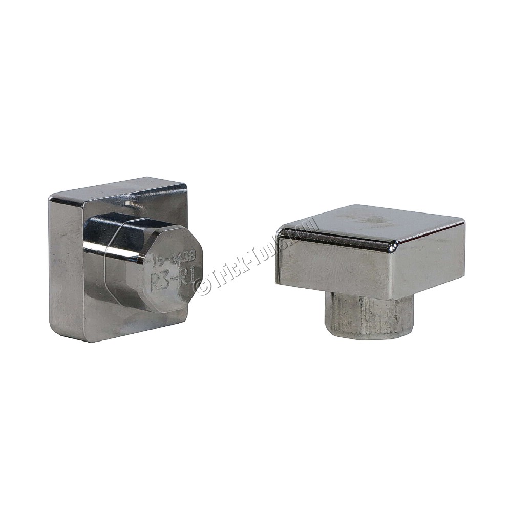 These flat square dies allow planishing into tight edges and corners. Each die has two different radii on the edges. Find the die edge that best fits the corner/flange on your panel for close and precise planishing.