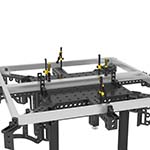 Siegmund imperial fixtures are designed around 28mm diameter work holes on a 4 inch grid spacing and 1 inch fixture and table thickness. Siegmund has designed fast clamping bolts to work with tables from other manufacturers that may have a slightly different table thickness. Contact us for more information on compatibility and see how much you can save on your modular fixtures.