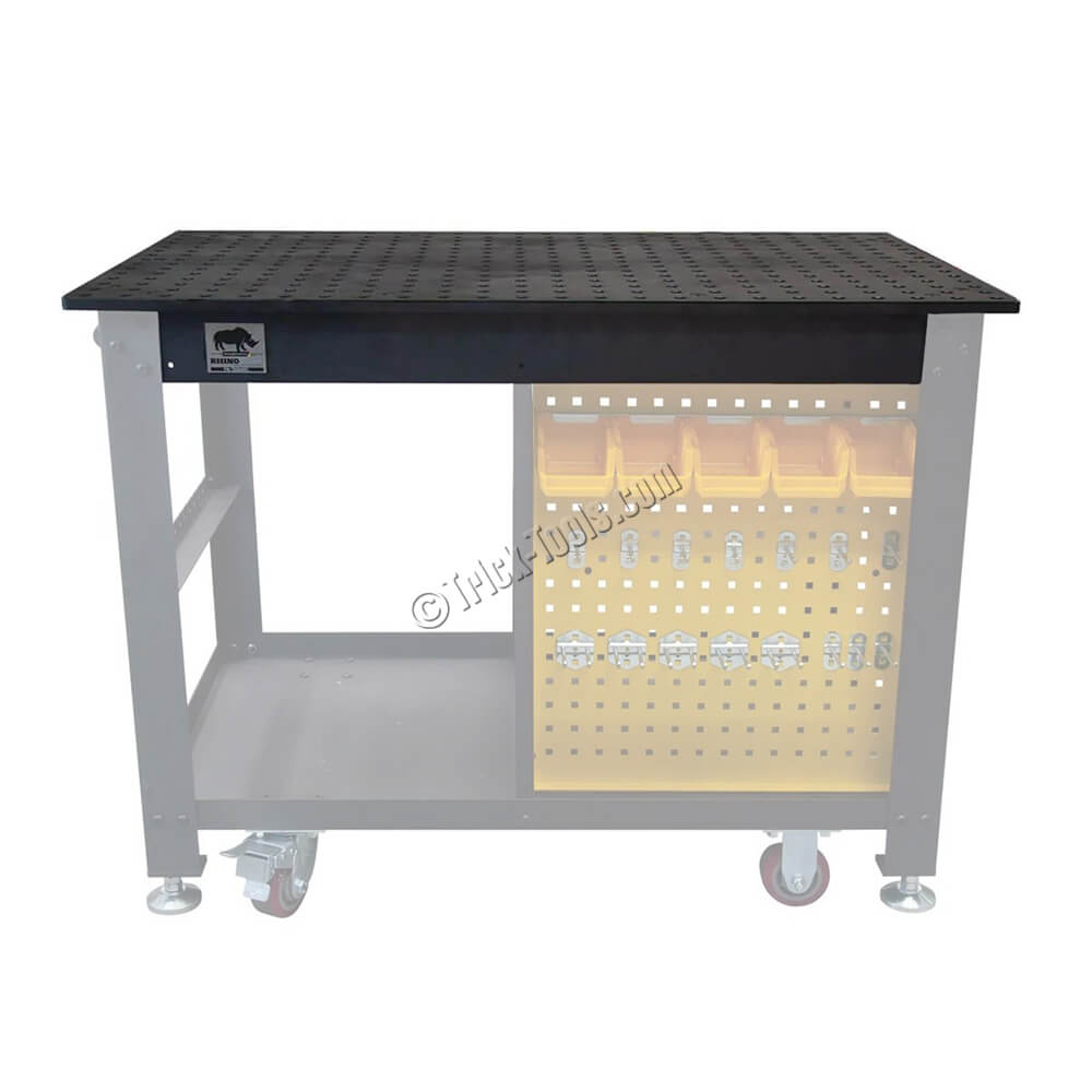 The nitrided and black oxide-coated Table Top Plate with frame is exactly what comes on our popular Rhino Cart mobile welding and fixturing cart. The top is reversible and provides excellent resistance to weld spatter, rust, and scratches. Its flat, precision-ground surface allows you to clamp and fixture at any point, ensuring accuracy in all your setups.
