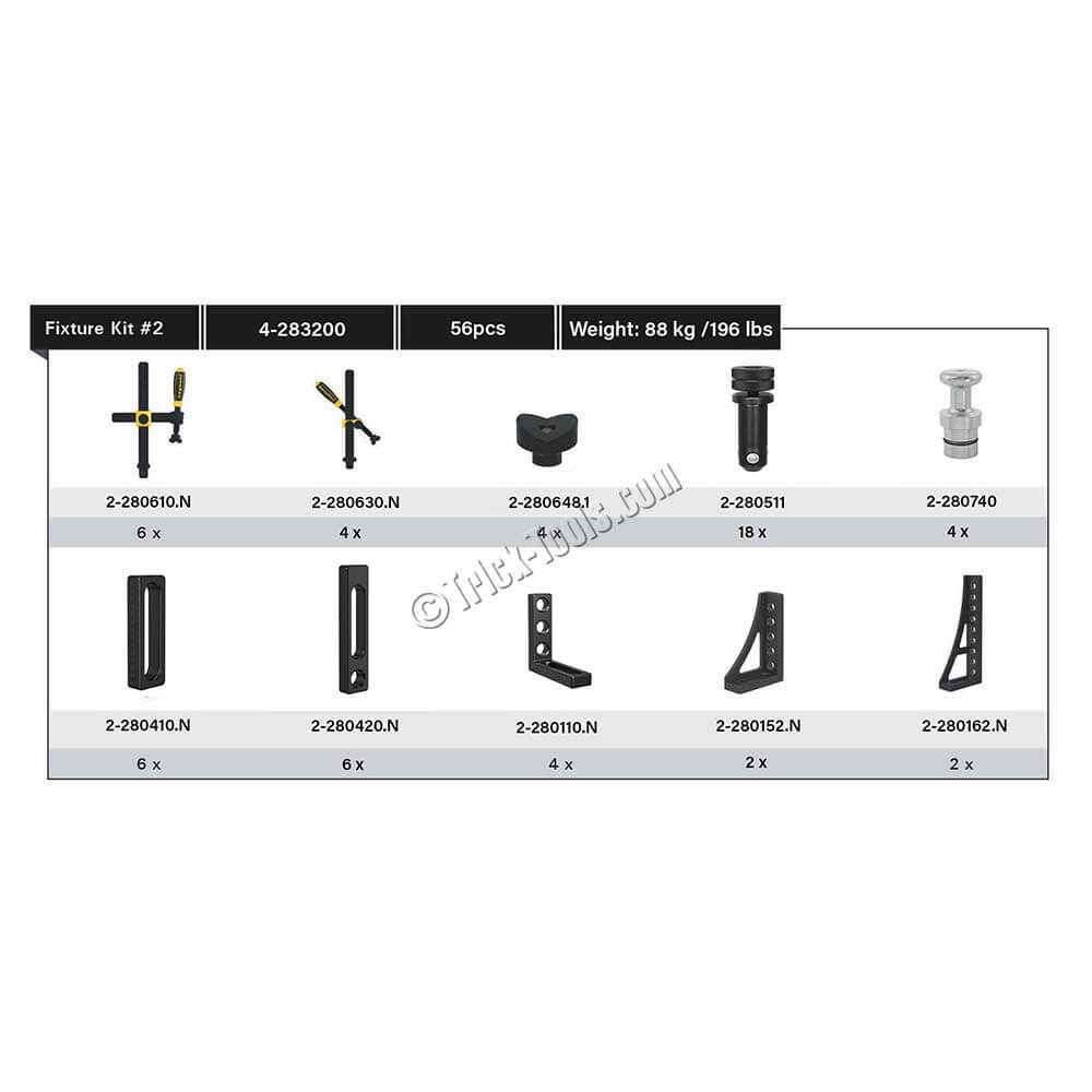 This Siegmund 56 piece fixturing kit is a great foundation to build your fixture library. All of the components are made from heavy duty steel and precision machined to strict tolerances. In addition to fixtures, each kit also includes an accessory pack with the necessary hardware and maintenance items.