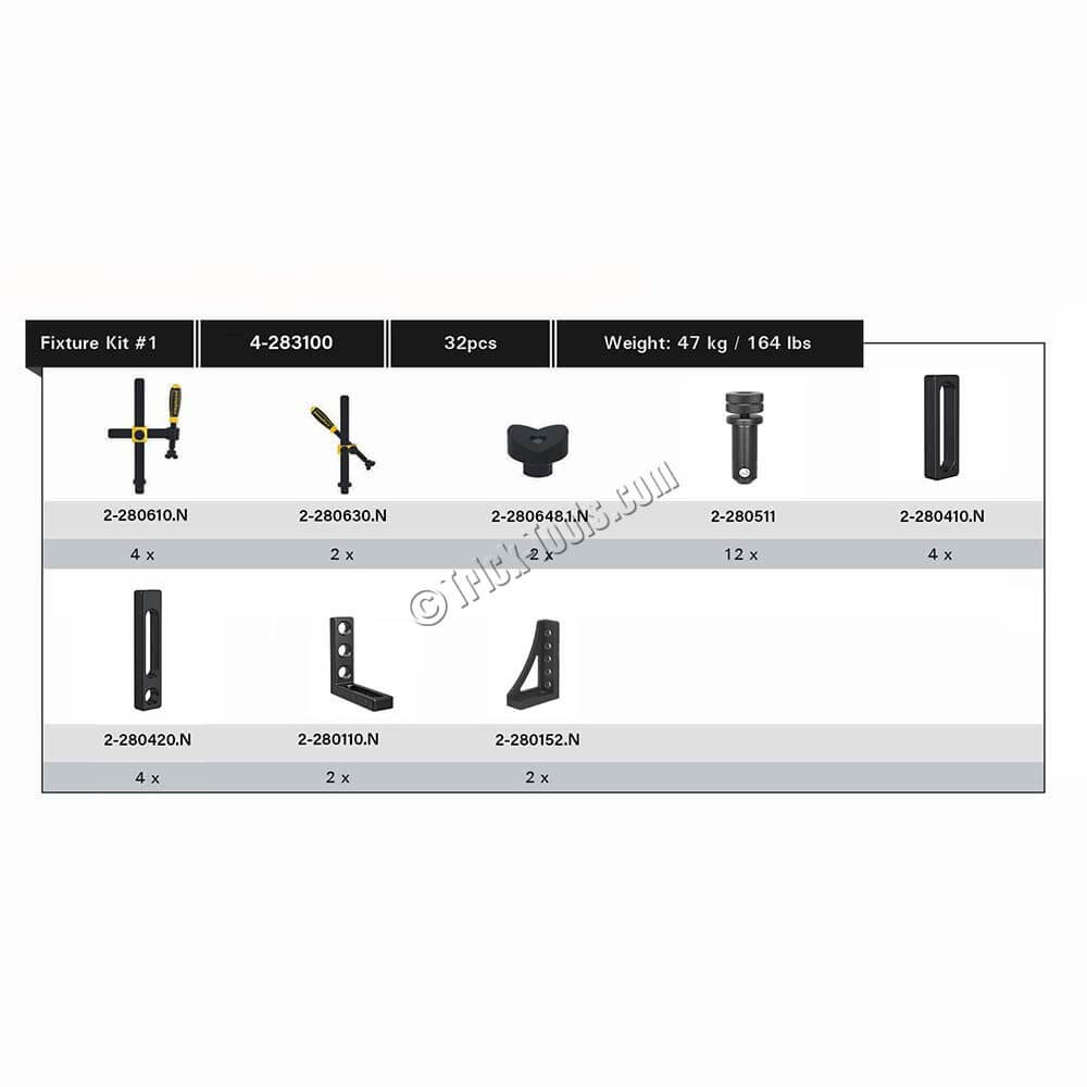 This Siegmund 32 piece fixturing kit is a great way to add on to your fixture library. All of the components are made from heavy duty steel and precision machined to strict tolerances. In addition to fixtures, each kit also includes an accessory pack with the necessary hardware and maintenance items.