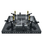 Siegmund fixtures are designed around 16mm diameter work holes on a 50mm grid spacing and 12mm fixture and table thickness. Siegmund has designed fast clamping bolts to work with tables from other manufacturers that may have a slightly different table thickness. Contact us for more information on compatibility and see how much you can save on your modular fixtures.