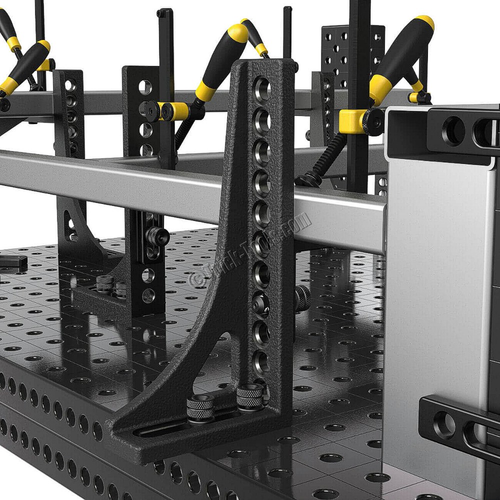 Siegmund fixtures are designed around 16mm diameter work holes on a 50mm grid spacing and 12mm fixture and table thickness. Siegmund has designed fast clamping bolts to work with tables from other manufacturers that may have a slightly different table thickness. Contact us for more information on compatibility and see how much you can save on your modular fixtures.