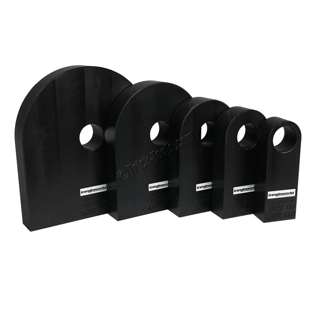 This is the full set of 1875EH Series Cutting Spacers for the Icengineworks tube cutting jig. Use these spacers with your cutting jig base plate when you want to add an additional size. Includes 2, 2.5, 3, 4, and 5 inch CLR spacers.